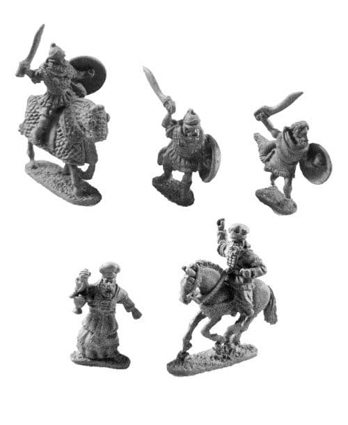 Pack of 5 models (2 mounted) from 5 different designs, representing: Judah Maccabee as a guerilla leader Judah Maccabee as a general (on foot and mounted) High Priest (on foot and mounted)